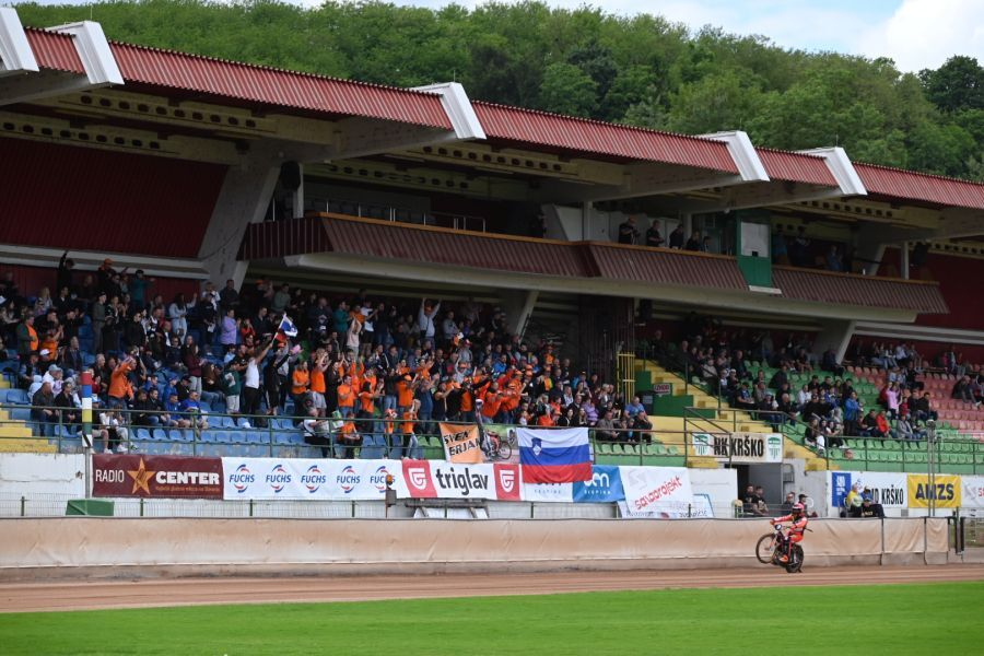 Gregor Zorko (rdeči motor) je silovito krenil v dirko na domači progi ovala stadiona Matije Gubca v Krškem.